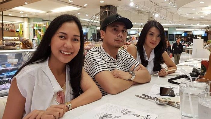 Gadis cantik itu tampak sumringah bersama dua kakak-kakaknya saat berfoto.