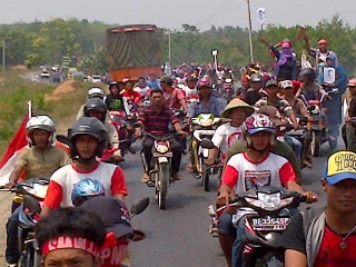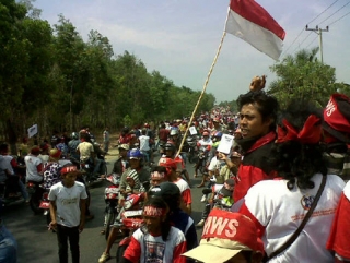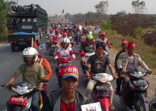 Ribuan orang yang mengendarai motor ini mendesak pemerintah untuk melaksanakan Rekomendasi TGPF Kasus Mesuji dan Memenuhi Hak-Hak Konstitusional Warga Moro-moro.(endra)