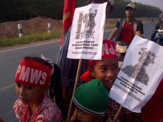 TRIBUNLAMPUNG.co.id - Inilah foto ribuan petani yang tergabung dalam Persatuan Petani Moro-Moro Way Serdang (PPMWS) yang memenuhi jalan lintas timur (Jalintim) Sumatera Kabupaten Mesuji untuk memeringati Hari Tani Nasional Ke-52, Senin (24/9/2012).