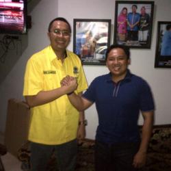 TRIBUNLAMPUNG.CO.ID, BANDAR LAMPUNG - Pasca pelantikan Tony Eka Chandra sebagai Ketua DPD I Partai Golkar Lampung, mantan ketua DPD II Golkar Lampung Heru Sambodo pamer foto dengan ketua DPD Partai Demokrat Lampung, yang juga gubernur Lampung, M. Ridho Ficardo.