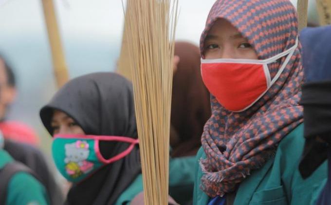 TRIBUNLAMPUNG.CO.ID, BANDAR LAMPUNG - Masyarakat Bandar Lampung yang tergabung dalam Koalisi Masyarakat Sipil Anti Korupsi Lampung menggelar aksi demo di bundaran Tugu Adipura, Senin (16/02). Dalam aksinya mereka menyerukan melawan koruptor dan menyelamatkan KPK.