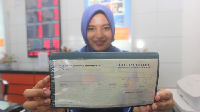 TRIBUNLAMPUNG.CO.ID, BANDARLAMPUNG - Petugas Customer Service BRI Raden Intan menunjukkan produk tabungan deposito di Bandar Lampung, Senin (28/3).