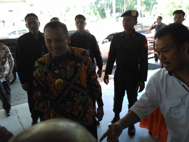 Kedatangan orang nomor satu di Unila disambut langsung oleh Wadek III Fisip Unila Pairulsyah beserta Dosen lainnya.(byu)