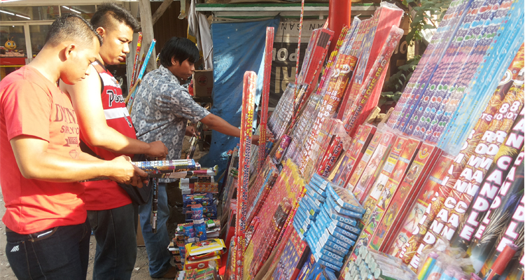 TRIBUNLAMPUNG.CO.ID, KALIANDA - Puluhan pedagang kembang api membanjiri jalan utama di Kalianda, jelang pergantian tahun, Sabtu (31/12/2016).