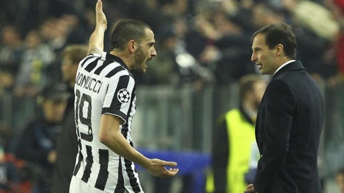 Momen tersebut melibatkan sang pelatih Massimiliano Allegri dan bek andalannya Leonardo Bonucci.
