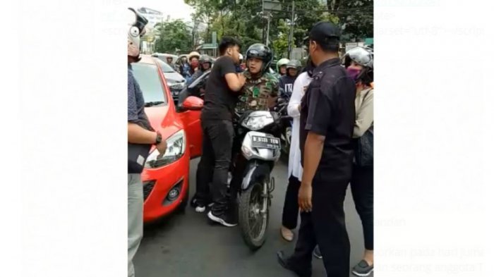 Si anggota TNI mencegat si pemuda dan mengingatkan baik-baik namun malah didorong.