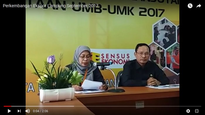 TRIBUNLAMPUNG.CO.ID, BANDARLAMPUNG - Nilai ekspor Provinsi Lampung September 2017 mencapai US$ 300,00 juta atau turun US$ 75,42 juta (20,09 persen) dibanding Agustus 2017.