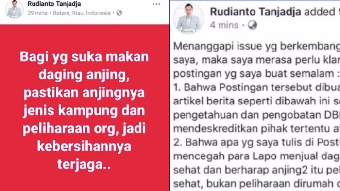 Rudianto Tanjadja, seorang pengacara mengunggah statemen tentang pemilihan daging anjing yang enak untuk dikonsumsi.