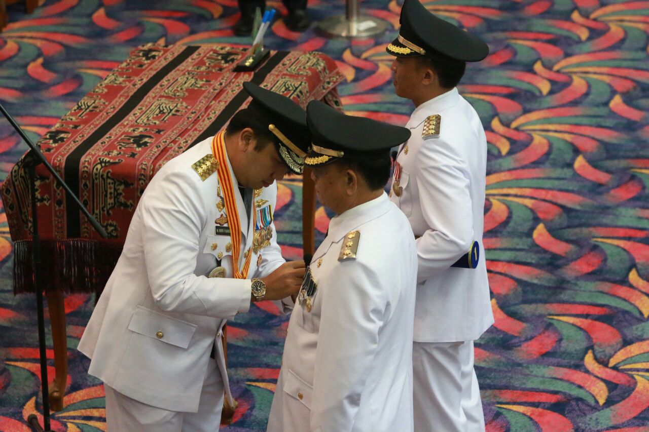 TRIBUNLAMPUNG.CO.ID, BANDARLAMPUNG - Gubernur Lampung M Ridho Ficardo melantik Bupati dan Wakil Bupati Lampung Barat terpilih periode 2017-2022, Parosil Mabsus dan Mad Hasnurin.