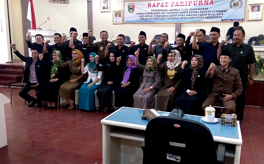 Permintaan foto bersama dilontarkan anggota dewan saat usai sidang paripurna laporan penyampaian akhir masa jabatan Bupati Tanggamus 2013-2018.