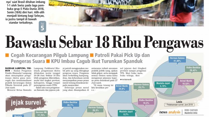 Seperti apa persiapan penyelenggara Pilgub dalam menyambut waktu pencoblosan 27 Juni nanti, dan seperti apa elektabilitas para cagub menurut hasil-hasil survei selama ini? Simak laporan lengkapnya pada Koran Tribun Lampung edisi Sabtu, 23 Juni 2018. (*)