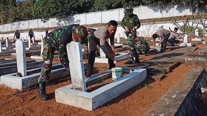 Polres Lampung Utara bersama Kodim 0412 Lampung Utara dan Kimal Lampung Utara menggelar Bhakti Sosial dengan membersihkan Makam Pahlawan