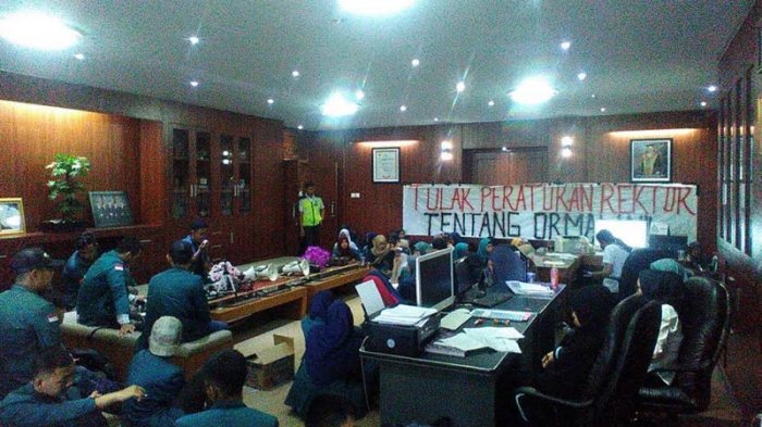 "Hari ini juga kami tetap masih duduk di rektorat menunggu agar tuntutan kami dikabulkan, agar tidak ada lagi pengekangan organisasi," katanya