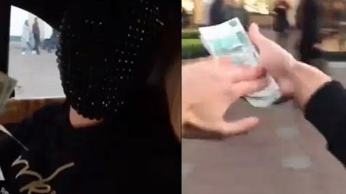 Dalam video tersebut terlihat anak kaya ini sedang di dalam mobil mengenakan penutup kepala manik-manik hitam dan Ia juga memegang segepok uang.