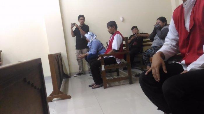 Kakak perempuan terdakwa Hendrik sudah menitikkan air mata ketika hakim ketua Surono membacakan vonis untuk terdakwa Rafi Febrianto.