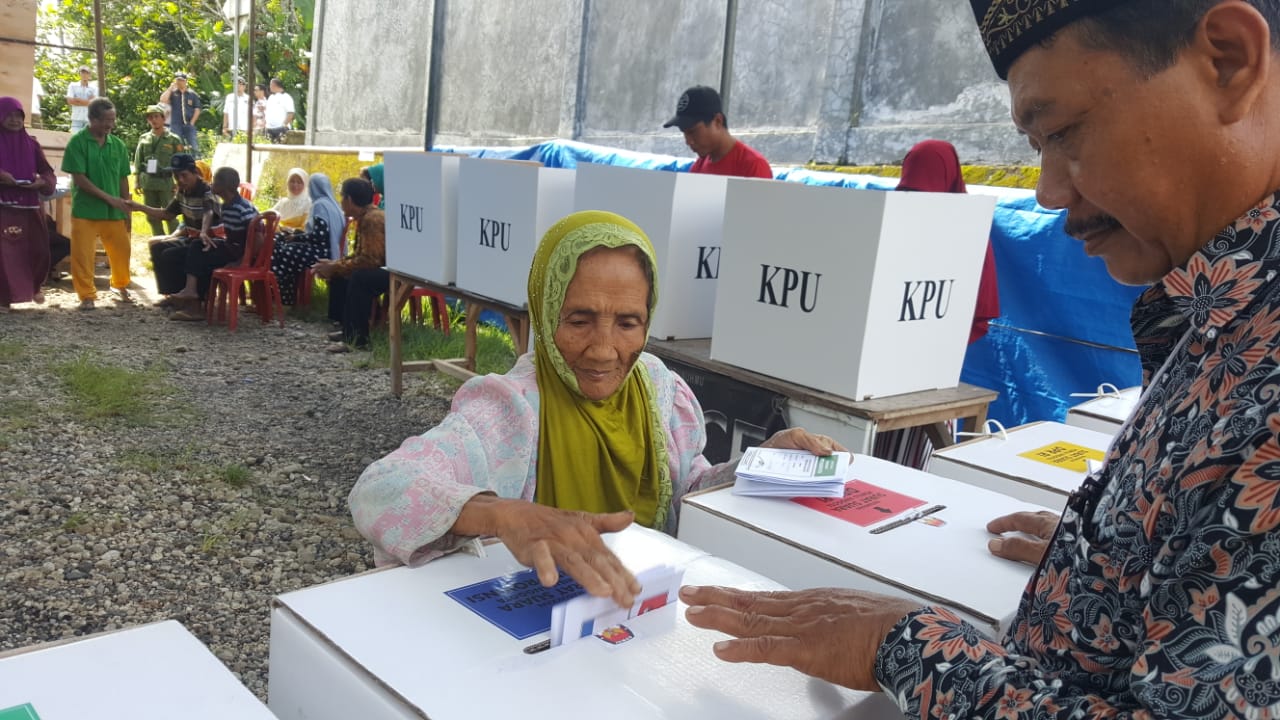 "Nenek Kamti (92 tahun) menggunakan hak pilihnya pada PSU di Pekon Rawas. Saat mencoblos, beliau didampingi anaknya," kata antonius.