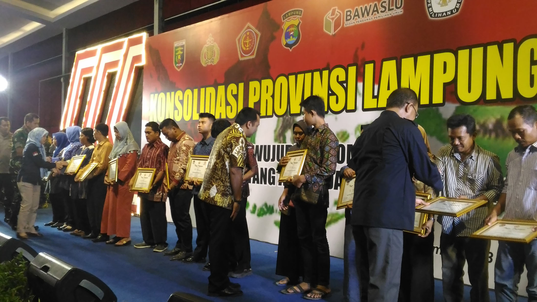Piagam penghargaan diserahkan Gubenur Lampung M Ridho Ficardo didampingi Kapolda Lampung Irjen Purwadi Ariyanto dan Pangdam II/Sriwijaya Mayjen Irwan.