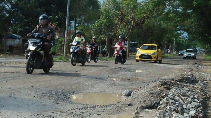 TRIBUNLAMPUNG.CO.ID, BANDAR LAMPUNG - Menjelang arus mudik lebaran, kondisi jalur dua Jalan Ryacudu, Korpri, Sukarame masih dipenuhi lubang.