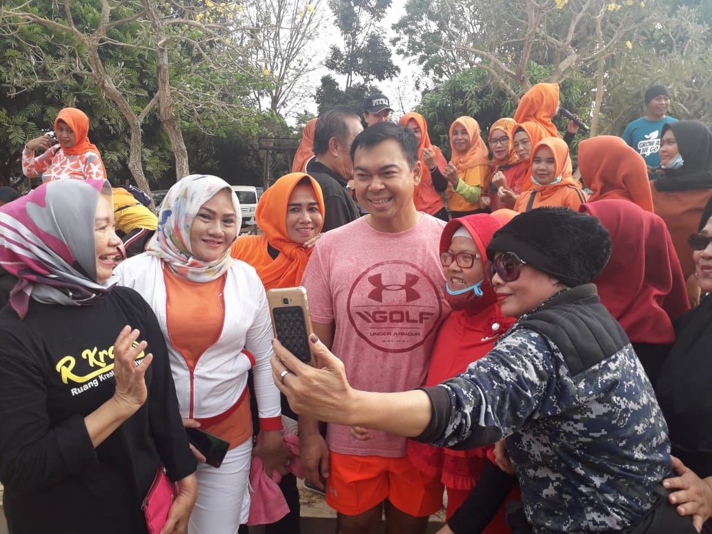 Usai mengelilingi Lapangan Kalpataru, Rycko Menoza langsung menghampiri emak-emak yang baru selesai melakukan senam.