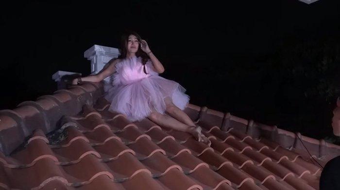 TRIBUNLAMPUNG.CO.ID - Pakai gaun merah muda, artis Lucinta Luna naik genteng rumah YouTuber Atta Halilintar.
