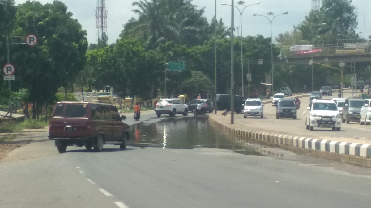 Hati-hati! Ada Genangan Air di Bypass Depan Asrama Haji Rajabasa