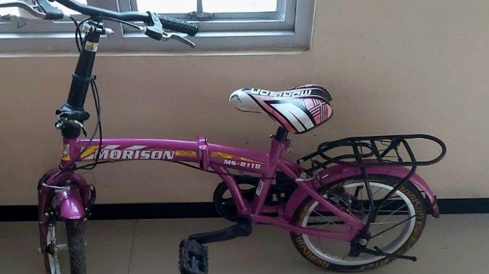 Polisi juga menyita 1 unit sepeda lipat Morison dan 1 unit sepeda motor Honda Beat tanpa pelat nomor yang digunakan kedua tersangka. (Tribunlampung.co.id/Dedi Sutomo)