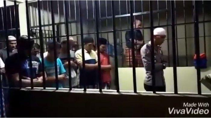 Sebuah Video Viral memperlihatkan seorang Perwira Polisi jadi imam salat berjamaah dengan makmum sejumlah tahanan di dalam penjara.