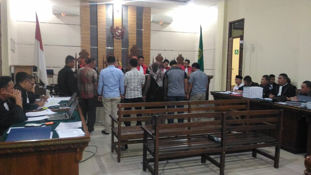 Tiga terdakwa hadir lebih awal, yakni Raden Syaril alias Ami, mantan Kadisdag Lampura Wan Hendri, dan mantan Kadis PUPR Lampura Syahbudin.