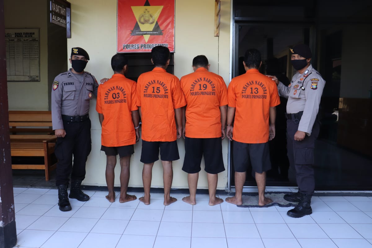 Polres Pringsewu menggulung empat orang penyalahguna narkoba, Selasa (14/4/2020). Tiga di antaranya diduga sebagai pengedar.