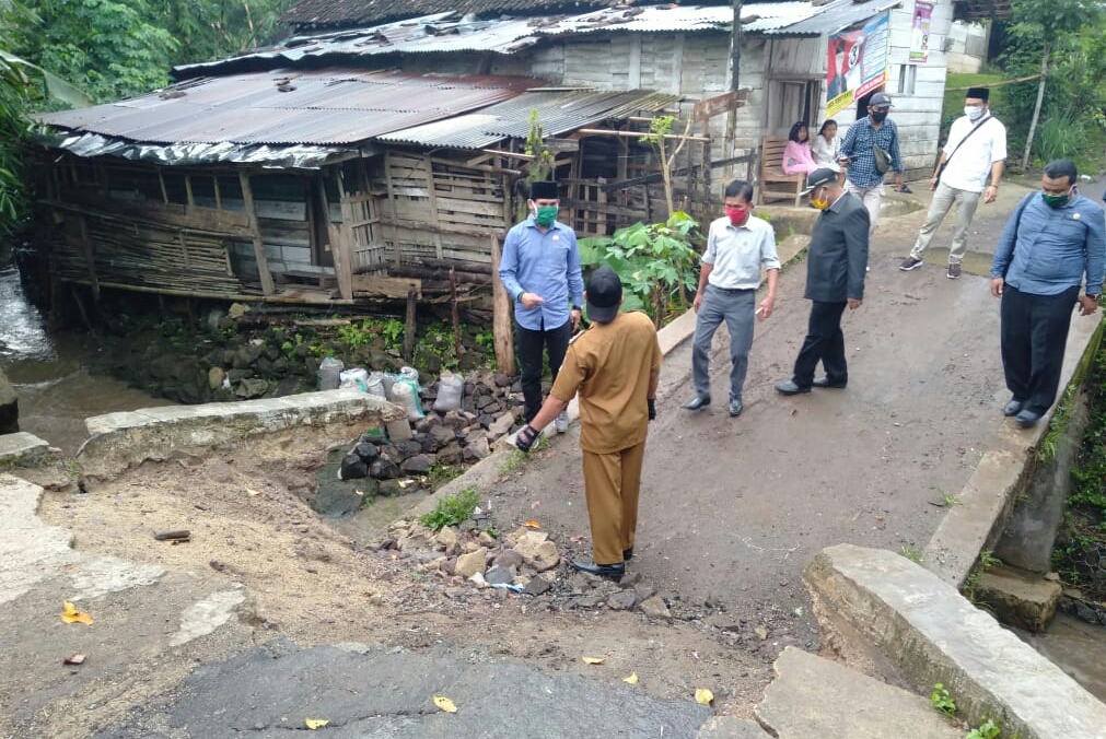 Komisi III DPRD Tanggamus meninjau jembatan patah di Pekon Negeri Agung Kecamatan Talang Padang yang ambles.