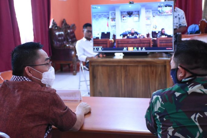 Bupati Lampung Timur (Lamtim) Zaiful Bokhari melakukan Video Conference dalam rangka koordinasi Pengendalian Dampak Covid-19 bersama Gubernur Lampung