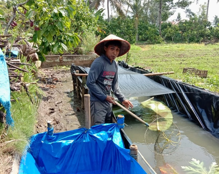 Tim LP mendapati, Andi Irawan sedang melakukan kegiatan budidaya ikan lele.