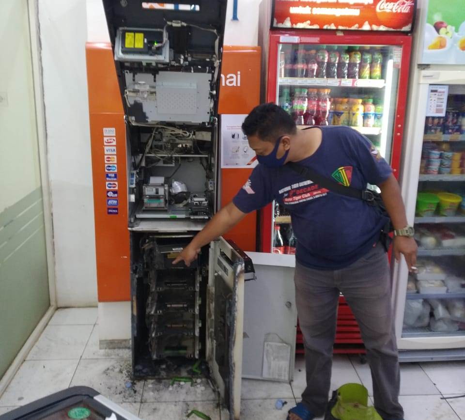 ATM yang berada di minimarket Indomaret jalan Darussalam Langkapura Bandar Lampung dibobol kawanan pencuri.