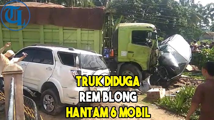 Kecelakaan beruntun yang melibatkan tujuh kendaraan diduga karena truk jenis dump truk mengalami rem blong.
