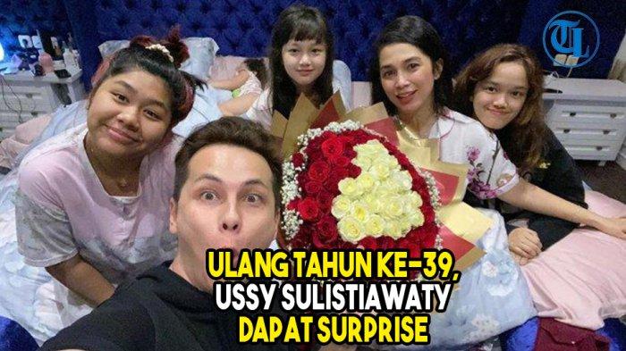 TRIBUNLAMPUNG.CO.ID - Potret artis Ussy Sulistiawaty mendapatkan kejutan ulang tahun dari Andhika Pratama dan anak-anaknya.