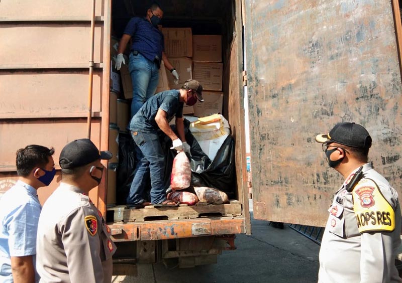 Kapolres Lampung Selatan, AKBP Edi Purnomo mengatakan, daging celeng tanpa dokumen tersebut dimasukan dalam 11 koli (karung).