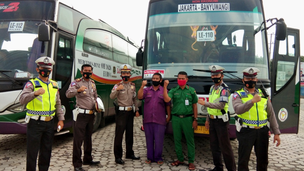 Aman, seorang sopir bus antar kota antar provinsi (AKAP) jurusan Belitang – Jakarta menyambut baik giat menggelorakan pemakaian masker oleh Satlantas Polres Lampung Selatan.