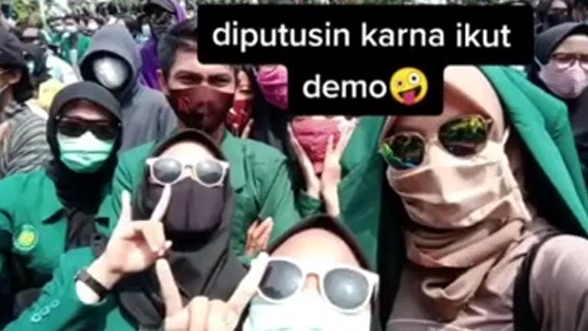 Video Viral memperlihatkan mahasiswi diputus pacar karena ikut demo tolak Omnibus Law UU Cipta Kerja di Lampung.