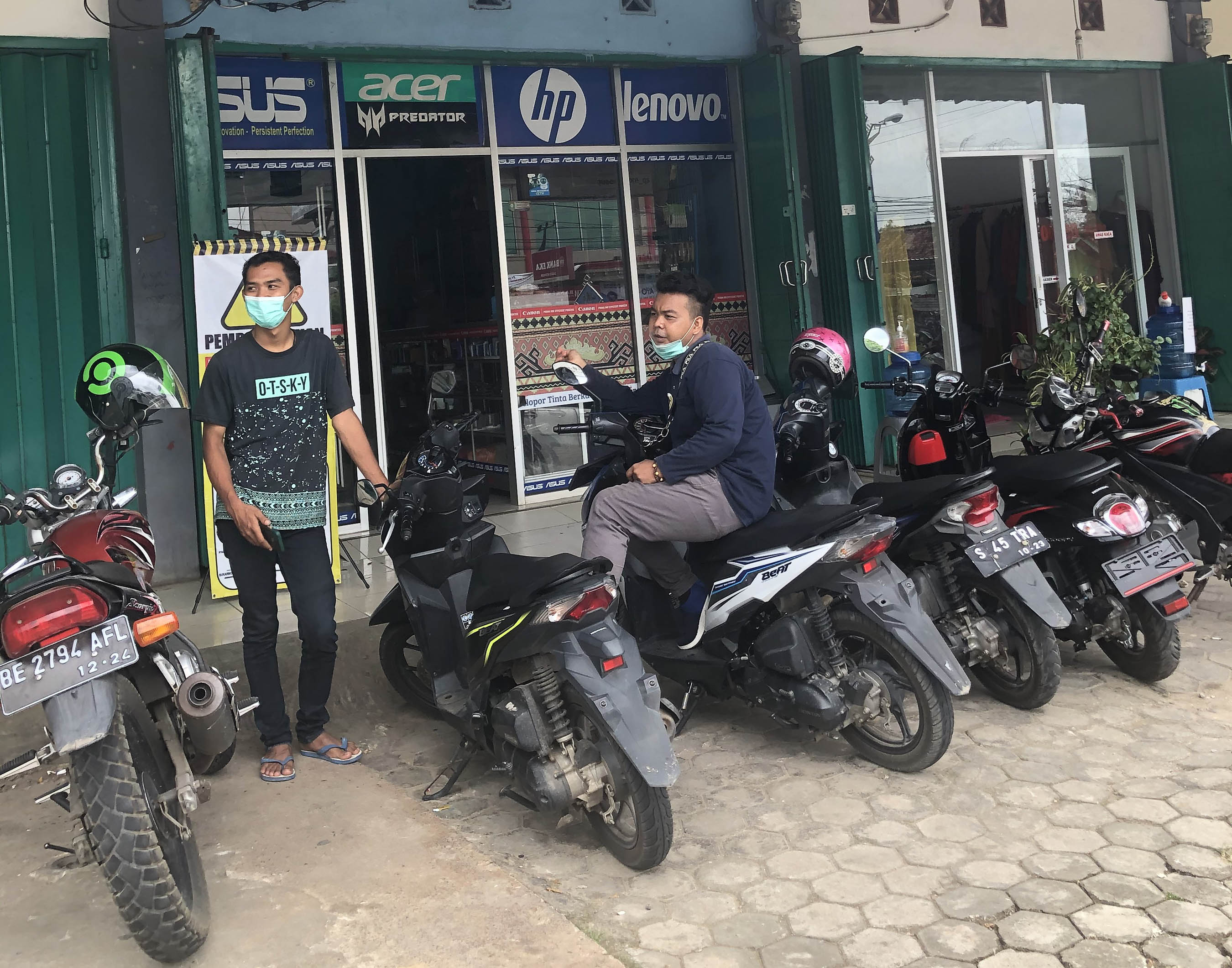 Saat itu dirinya bersama dengan rekannya kebetulan di dalam ruko, sedangkan motor terparkir di luar.