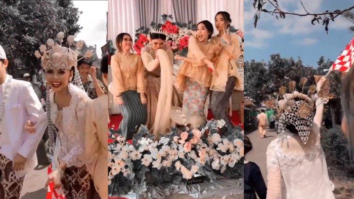 TRIBUNLAMPUNG.CO.ID - Viral video pengantin perempuan heboh membawa bendera hingga suami ketinggalan.