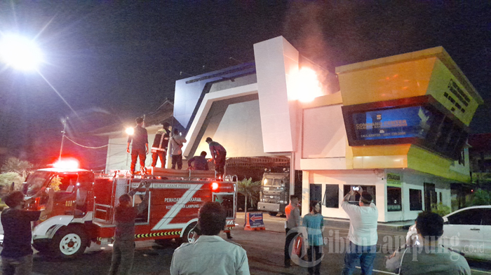 Terjadi korsleting listrik, kantor common center Polresta Bandar Lampung terbakar. Peristiwa ini terjadi sekira pukul 18.45 WIB, Jumat (19/2/2021).