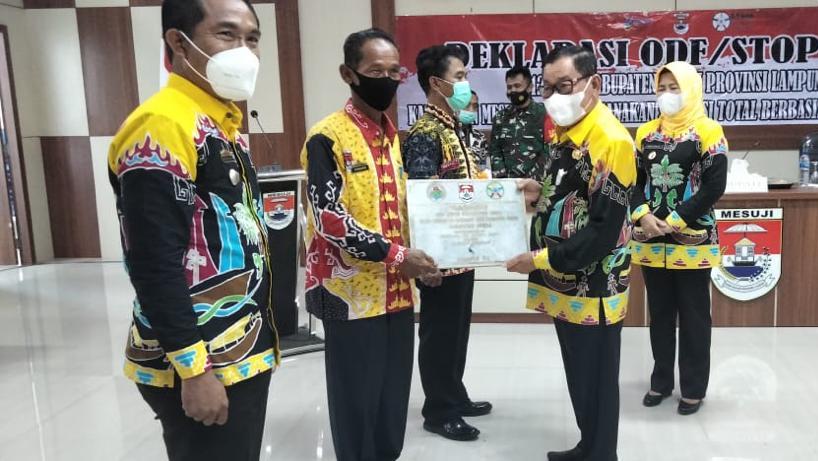 Bupati Mesuji Saply TH menghadiri deklarasi Open Defecation Free (ODF) kepada 12 Desa dari Kecamatan Way Serdang, Tanjung Raya, dan Mesuji Timur.