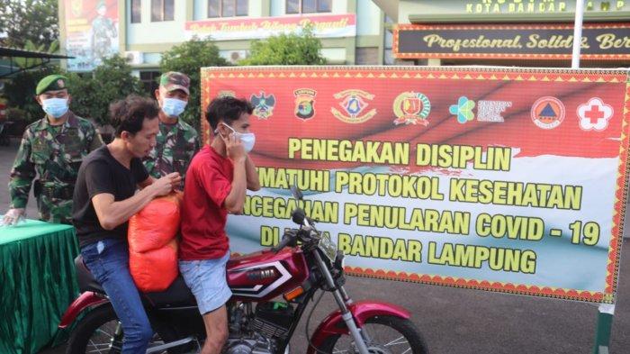 TRIBUNLAMPUNG.CO.ID, BANDAR LAMPUNG - Menjelang berbuka puasa di bulan Ramadhan 1442 H, sejumlah personel Kodim 0410/KBL melakukan kegiatan sosial dengan membagikan takjil dan masker kepada masyarakat. Sabtu (24/4/2021).