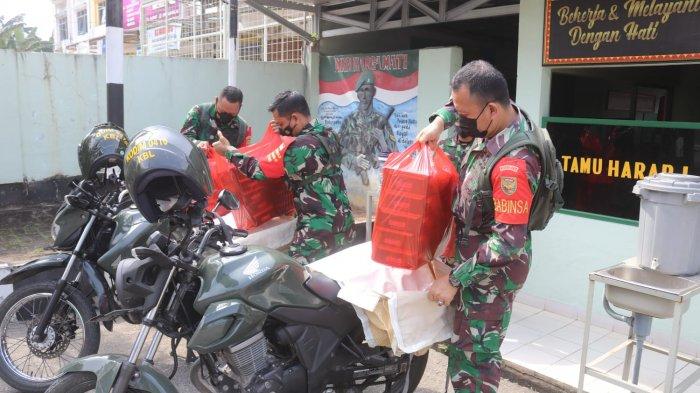Bakti Sosial TNI, Koramil 410-04/TKT Bagikan Makanan dan Masker kepada Warga Kedamaian