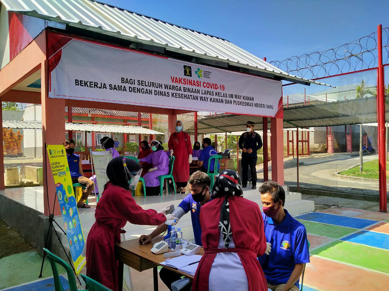 100 narapidana Lapas Way Kanan mendapatkan vaksin Covid-19 dosis pertama, hal ini untuk mengantisipasi terhadap penyebaran virus Covid-19 bagi tahanan
