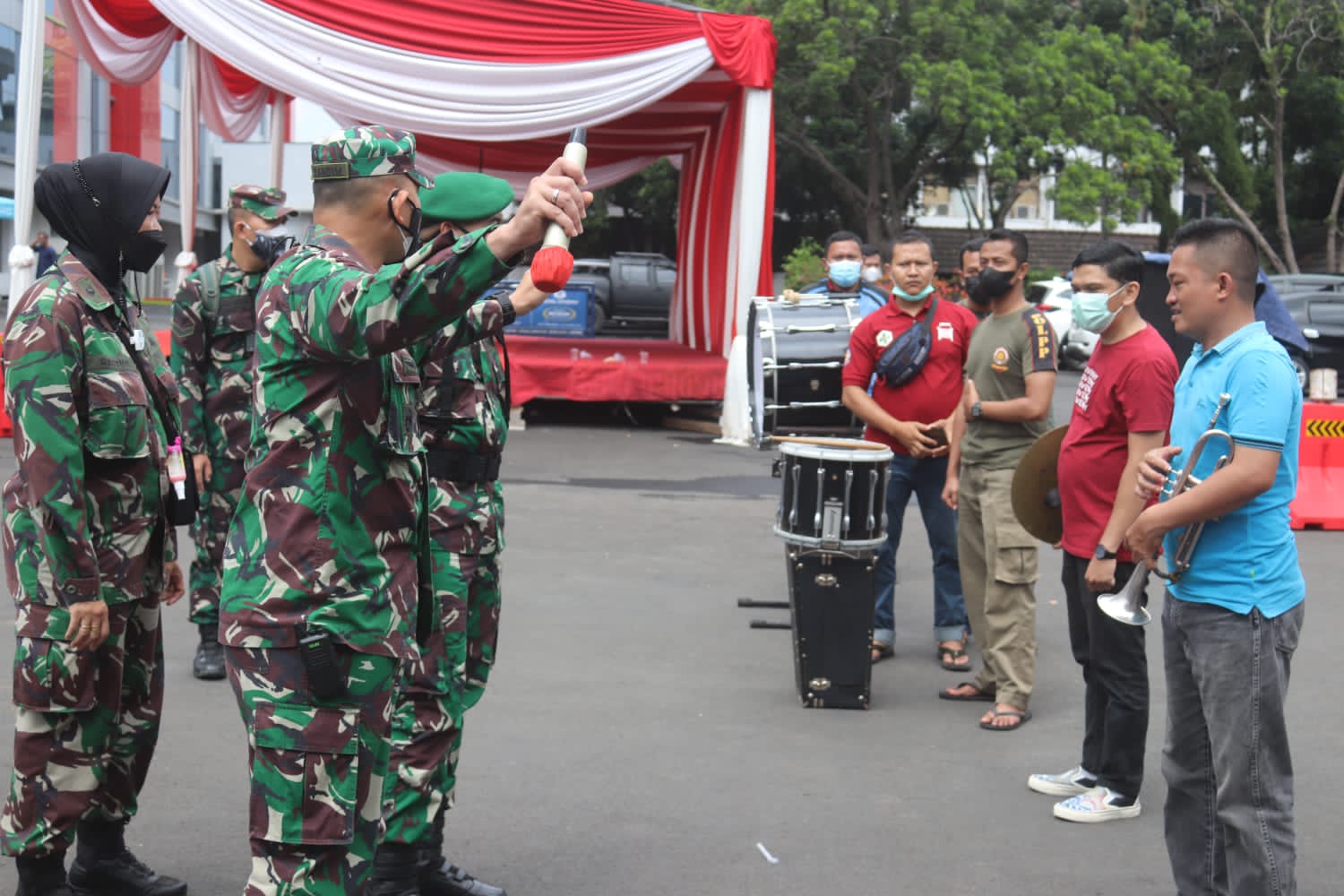 TRIBUNLAMPUNG.CO.ID, BANDAR LAMPUNG - Komandan Kodim 0410/KBL Kolonel Inf Romas Herlandes SE.,M.Si.,MM, menyaksikan gladi kotor Upacara Detik-detik Proklamasi dan Pengibaran Bendera Pusaka di tingkat Kota Bandar Lampung untuk memperingati HUT Kemerdekaan RI ke-76. Bertempat di halaman gedung Satu Atap Jalan Dr Susilo, Kelurahan Sumur Batu, Kecamatan Teluk Betung Utara, Kota Bandar Lampung, Minggu (15/8/2021)