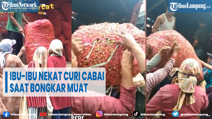Sekelompok emak-emak nekat mencuri cabai viral di media sosial. Para ibu tersebut mengambil cabai dari celah-celah lubang karung.