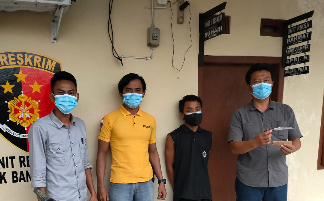 "Saat itu pelaku mengendarai sepeda motor dan berhenti di pinggir jalan depan rumah korban dengan posisi tangan pelaku sudah memegang sajam jenis badik," jelas Kapolsek.
