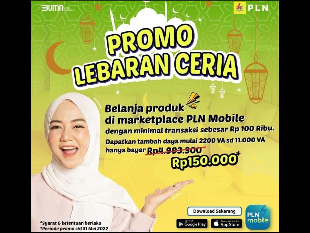 Promo “Lebaran Ceria” adalah program tambah daya yang diperuntukkan bagi konsumen tegangan rendah. Pelanggan dengan tegangan rendah 1 (satu) fasa semua golongan tarif yang telah menjadi konsumen sebelum tanggal 1 Maret 2022 berkesempatan untuk melakukan tambah daya ke 2.200 VA hingga 11.000 VA dengan harga sebesar Rp 150 ribu dengan periode promo bulan April dan Mei 2022.