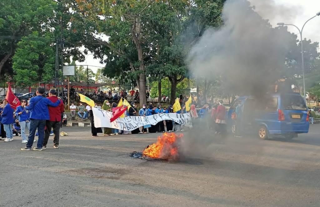 Aksi dilanjutkan dengan membakar ban, dan penyampaian aspirasi oleh para mahasiswa.